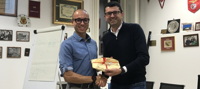 Al termine della serata il Presidente ha ringraziato Giuseppe per tutti i consigli dispensati, omaggiandolo con un tipico dolce lodigiano: la Tortionata.